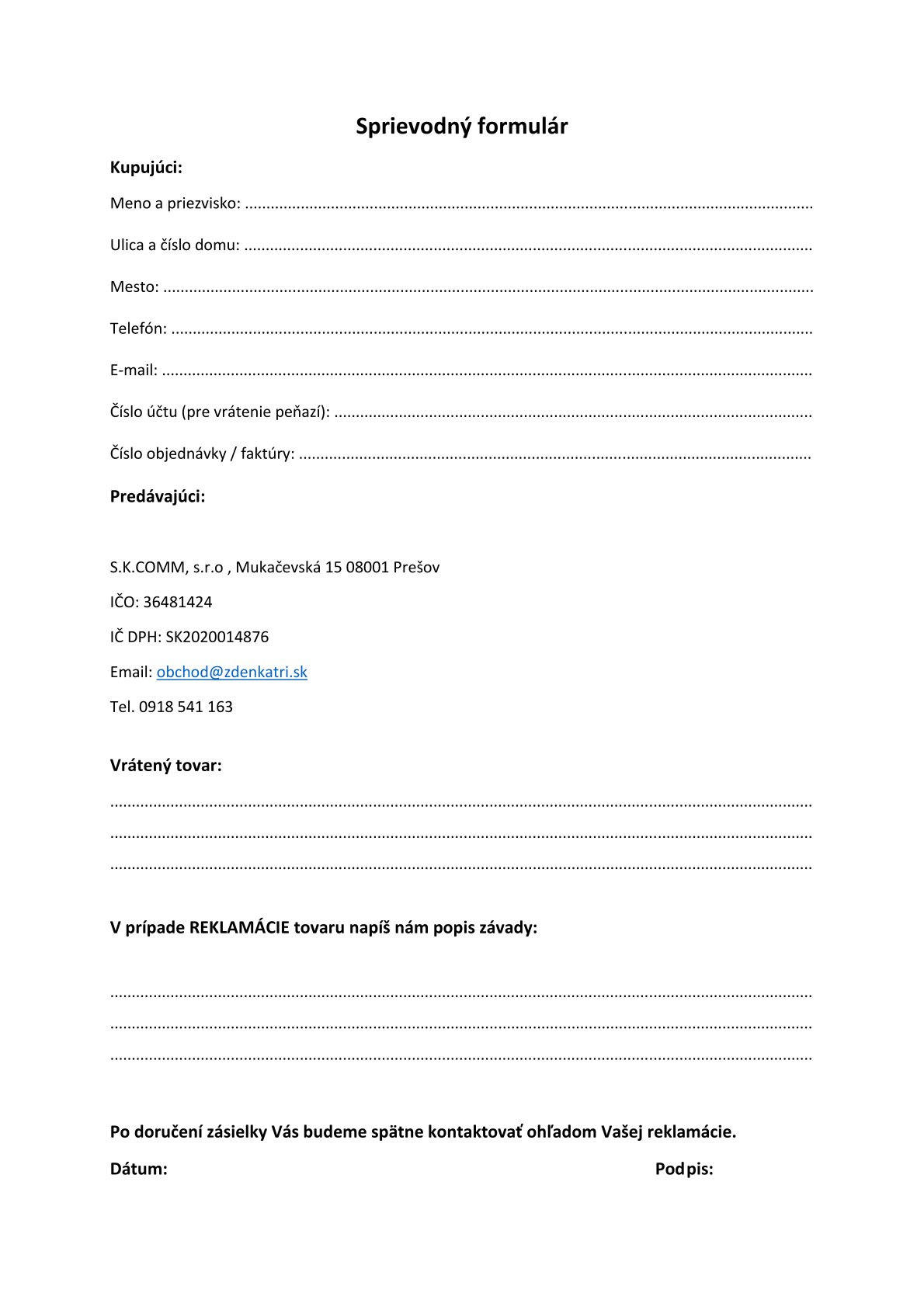 SPRIEVODNÝ FORMULÁR NA STIAHNUTIE